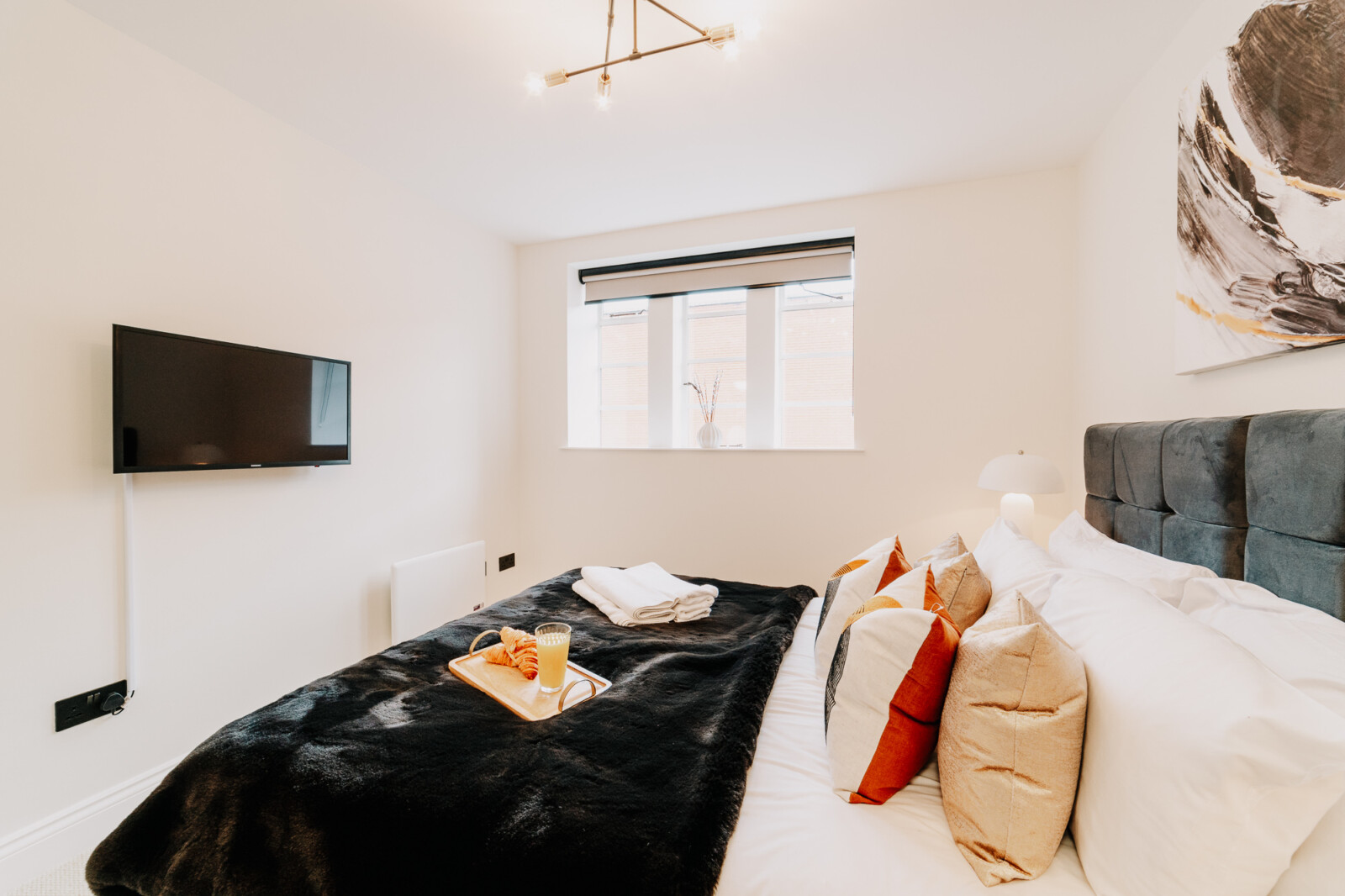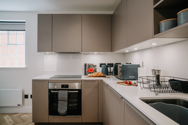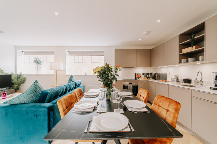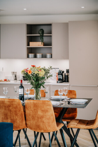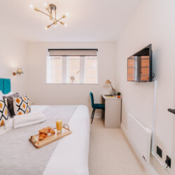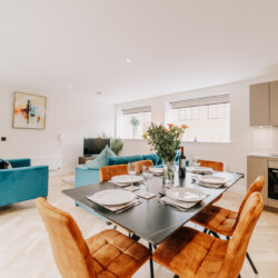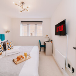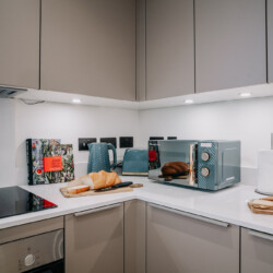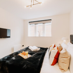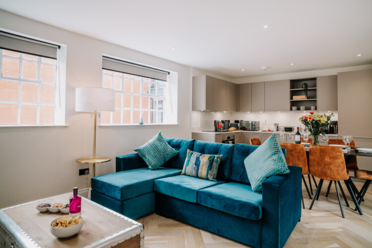 In the lounge, you can relax on a comfortable sofa whilst watching the 43 inch 4K smart HDTV. We provide super fast WiFi that extends throughout the apartment, and a dedicated work desk is provided with a comfortable office chair. This makes the apartments at The Colmore perfect for corporate stays, or for those who need to work during their stay.
