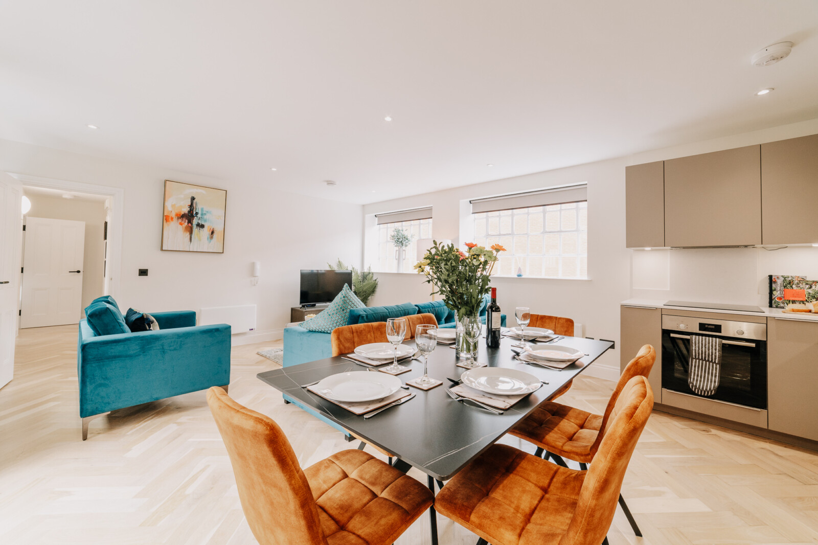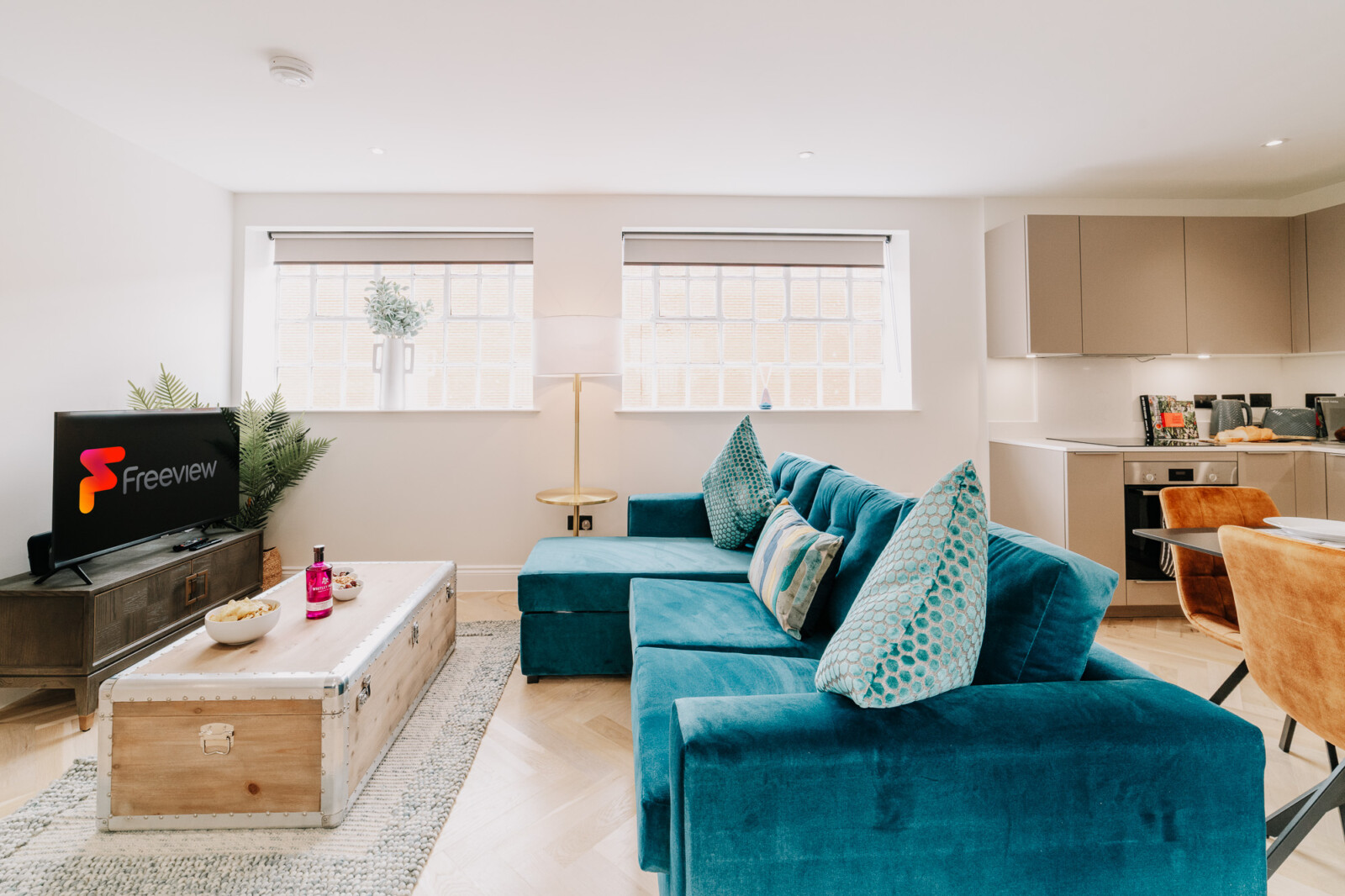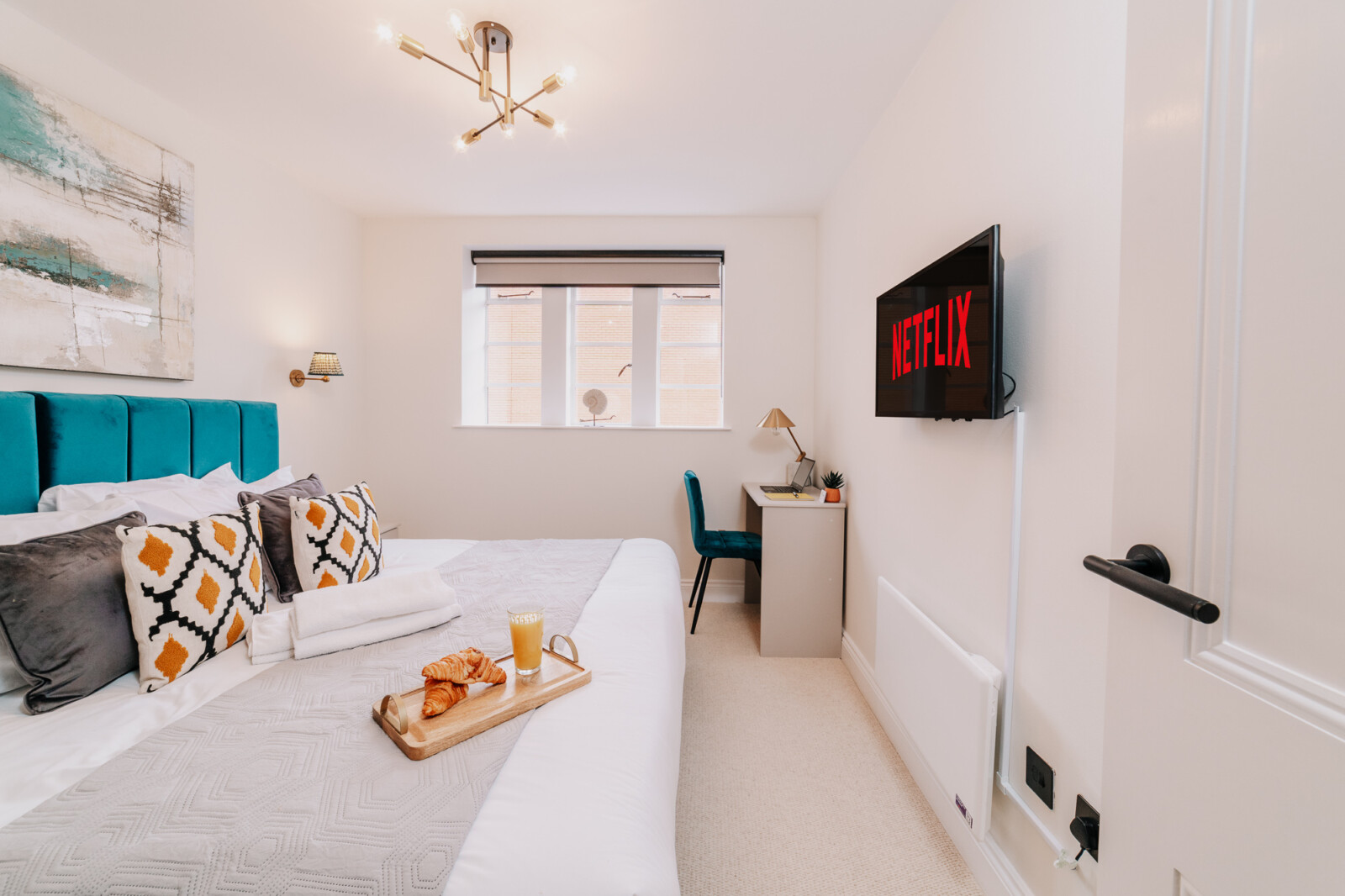 In the lounge, you can relax on a comfortable sofa whilst watching the 43 inch 4K smart HDTV. We provide super fast WiFi that extends throughout the apartment, and a dedicated work desk is provided with a comfortable office chair. This makes the apartments at The Colmore perfect for corporate stays, or for those who need to work during their stay.