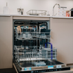 - Wash and dry all dishes and cutlery, or place into the dishwasher and turn it on.