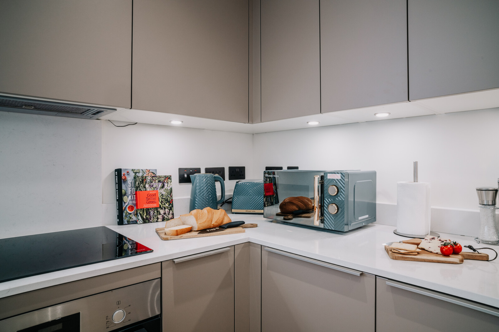 Appliances include an induction hob, electric oven, microwave, dishwasher, fridge-freezer and a washer-dryer. We also provide an iron and ironing board, microwave, toaster, kettle, dishwasher, and provide complimentary tea, hot chocolate and biscuits.