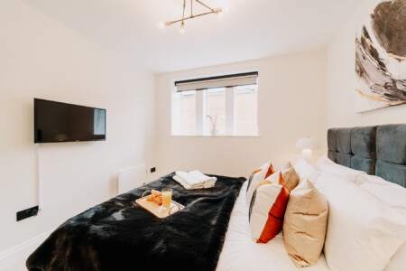 In the lounge, you can relax on a comfortable sofa whilst watching the 43 inch 4K smart HDTV with Netflix. We provide super fast WiFi that extends throughout the apartment, and a dedicated work desk is provided with a comfortable office chair. This makes the apartments at The Colmore perfect for corporate stays, or for those who need to work during their stay.
