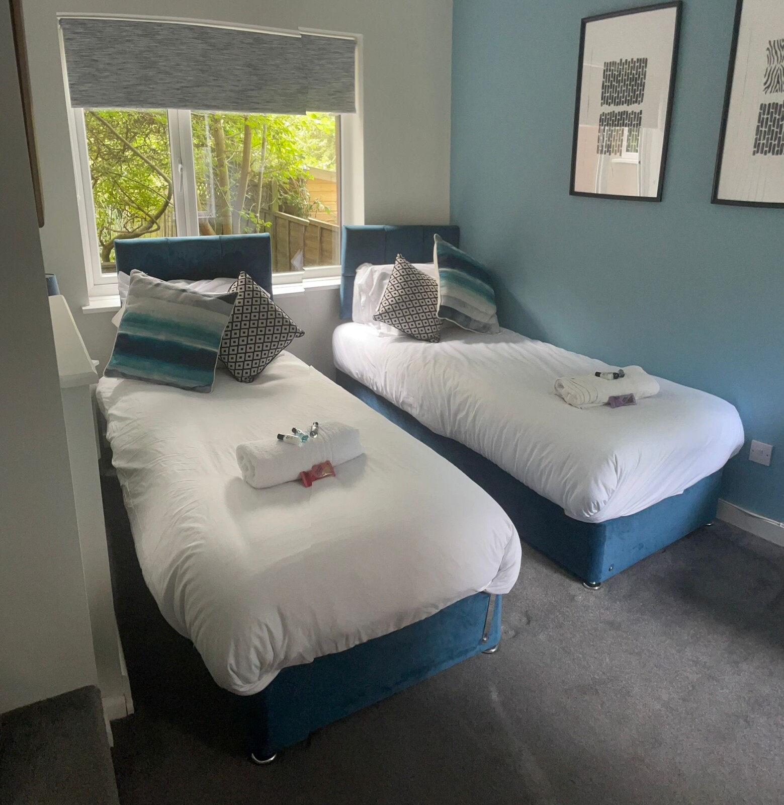 All the bedrooms have 32 inch 4K smart HDTVs with Netflix and hairdryers. We provide complimentary toiletries for guests such as shampoo, conditioner, and body wash, and all towels and linen are provided. Blossom Room has a super king bed or it can be setup as Twin single beds.Orchid Room has a super king bed or it can be setup as Twin single beds. Clover room has a double bed with a smart TV and Netflix. Bluebell Room is the downstairs bedroom and has a super king bed or it can be setup as Twin single beds. The sofa bed in the lounge is a double sized bed.