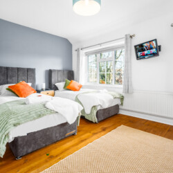 The house can sleep up to 7 guests and the bed format can be tailored to suit your preference. As standard, we provide a super-king bed in the master bedroom, a king bed and a single bed in the second bedroom, and a double sofa bed in the lounge. If you would like the super-king and/or king bed to be set up as twin beds, please give us at least 24 hours notice to arrange this for you.