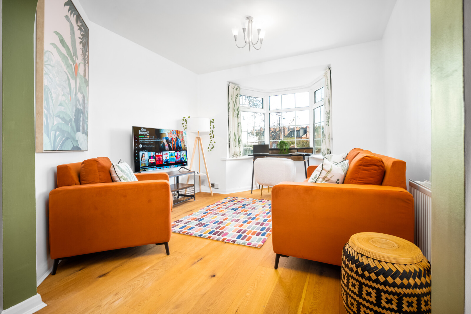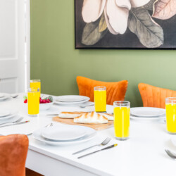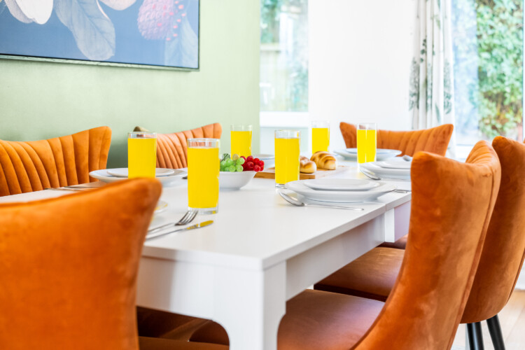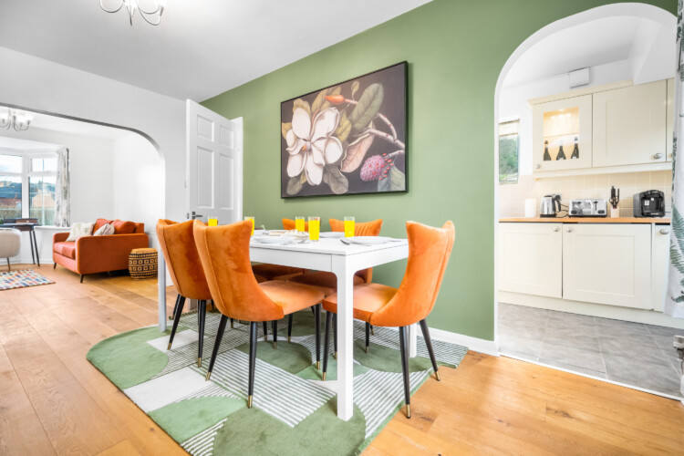 In the lounge, there is a 50 inch 4K smart HDTV with Netflix and Freeview. We provide super fast WiFi that extends throughout the house. The dining area has a dining table for 6 people that can double up as a workspace. There is also a dedicated office desk in the lounge for guests’ use.