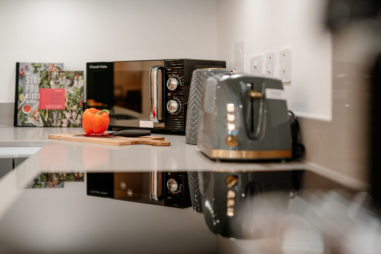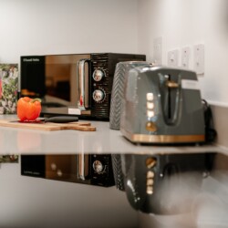 Appliances include an induction hob, electric oven, microwave, dishwasher, fridge-freezer and a washer-dryer. We also provide an iron and ironing board, microwave, toaster, kettle, dishwasher, and provide complimentary tea, hot chocolate and biscuits.