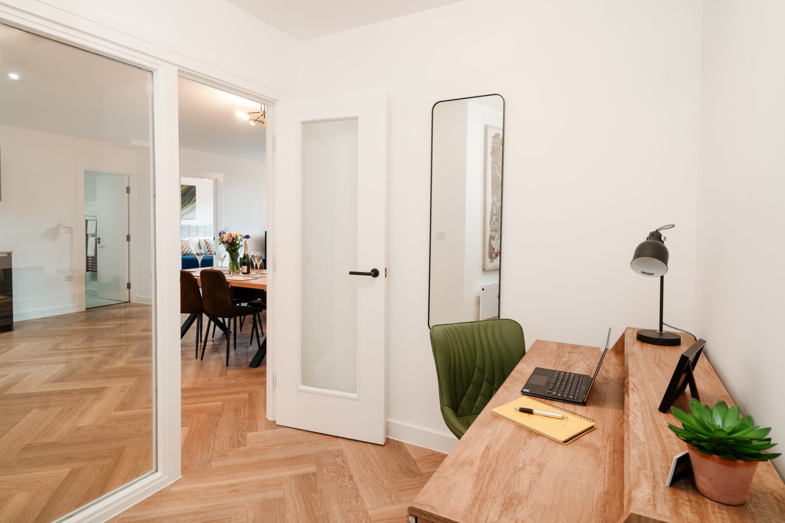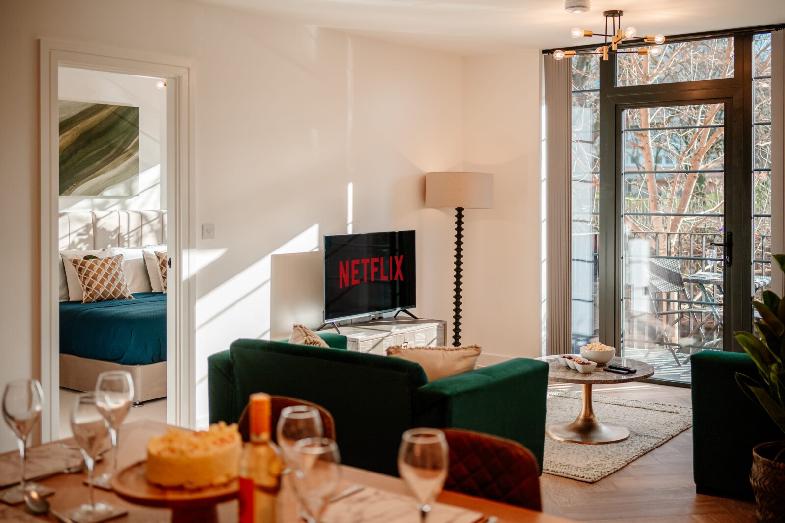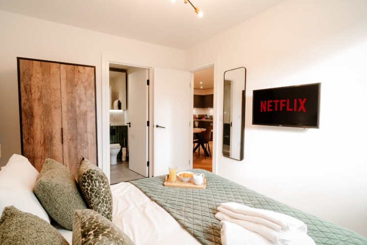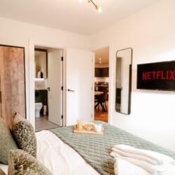 In the lounge, you can relax on a comfortable sofa whilst watching the 55 inch 4K smart HDTV with Netflix. We provide super fast WiFi that extends throughout the apartment, and a dedicated work office with desk is provided with a comfortable office chair. This makes the Lockside House apartments perfect for corporate stays, or for those who need to work during their stay.