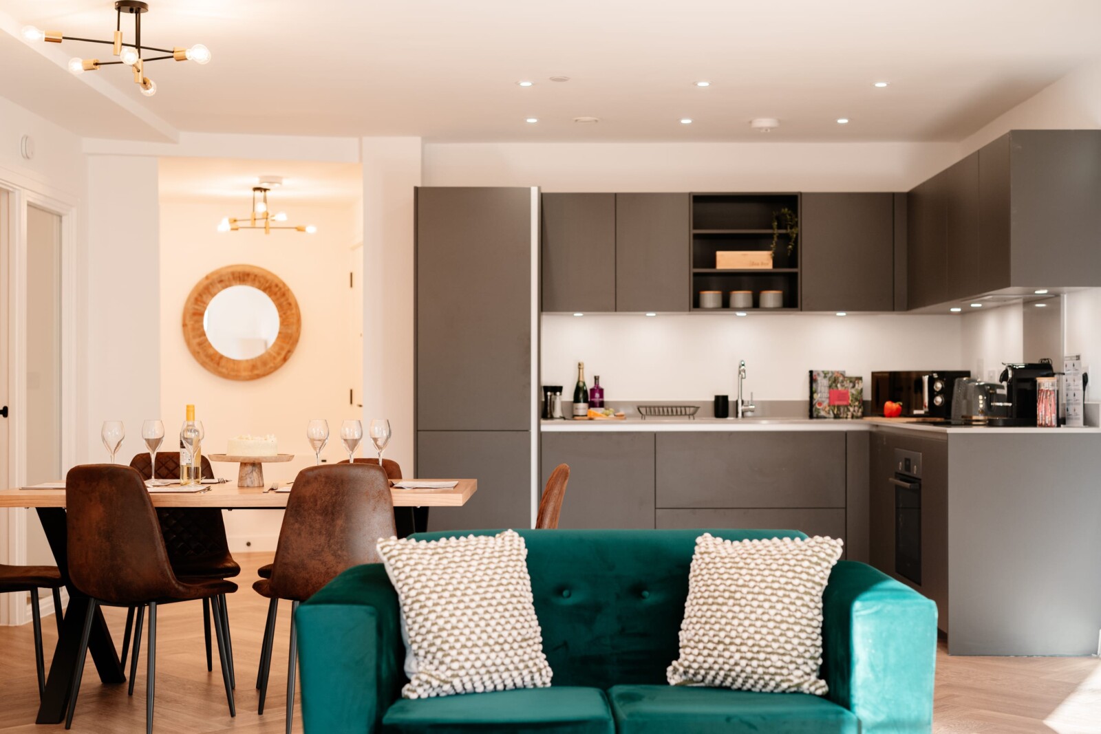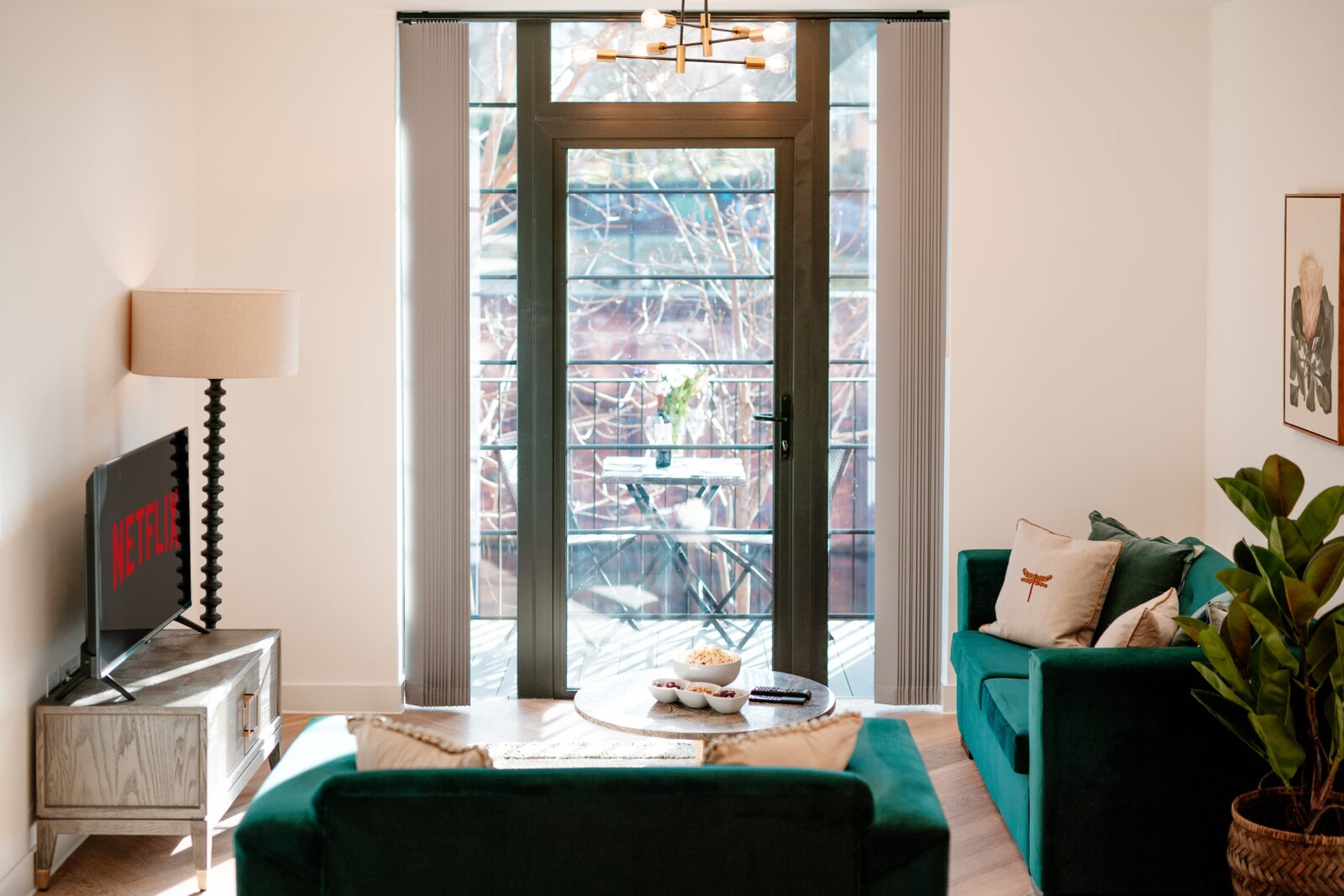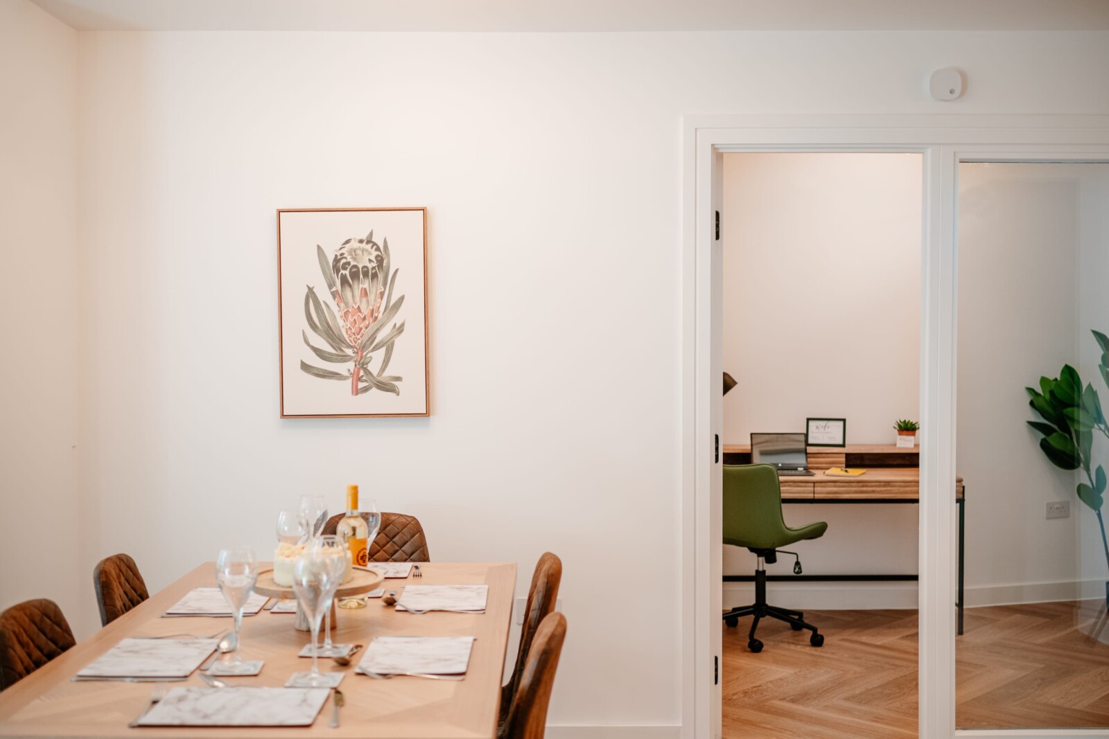 In the lounge, you can relax on a comfortable sofa whilst watching the 55 inch 4K smart HDTV with Netflix. We provide super fast WiFi that extends throughout the apartment, and a dedicated work office with desk is provided with a comfortable office chair. This makes the Lockside House apartments perfect for corporate stays, or for those who need to work during their stay.