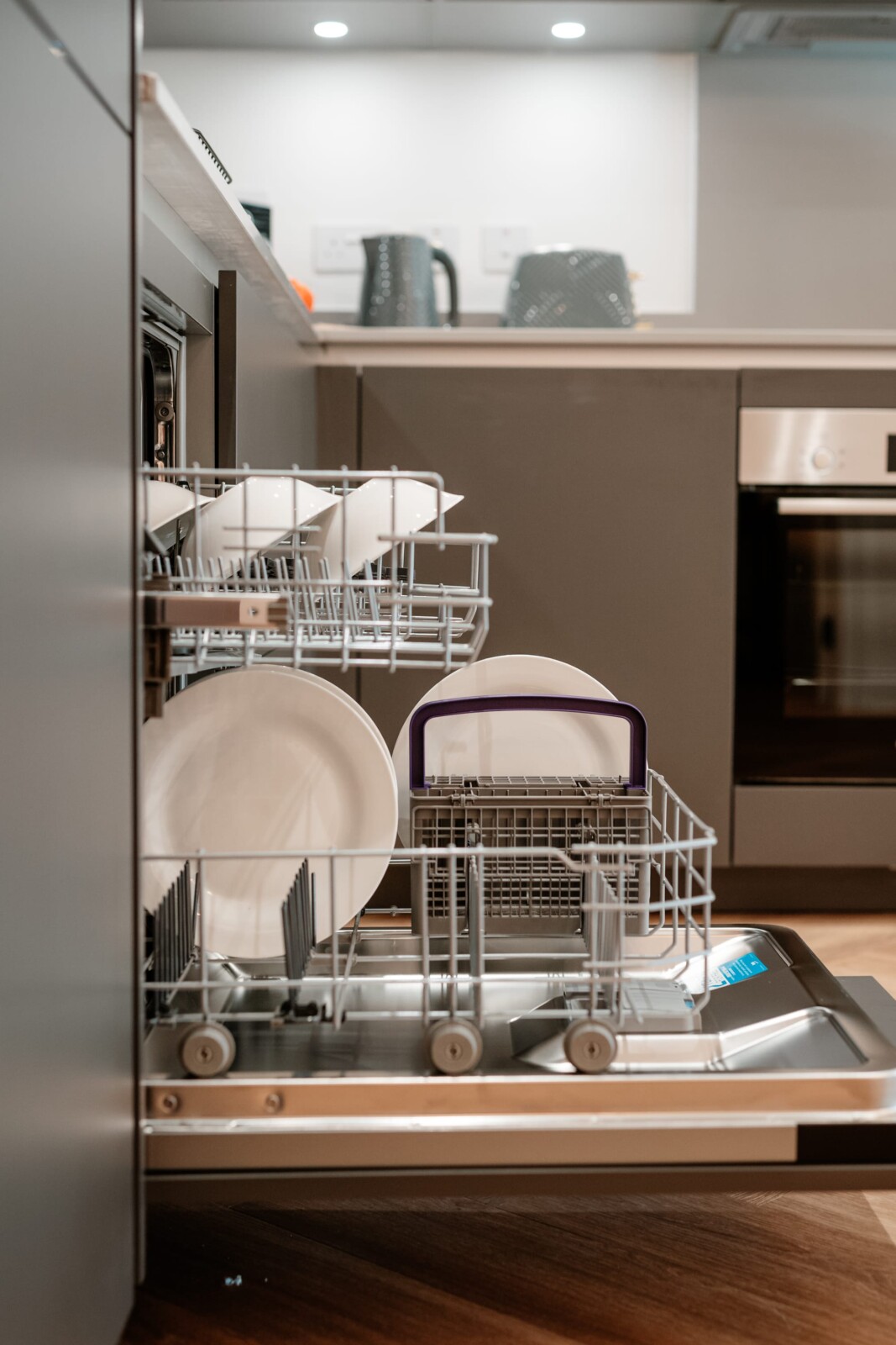 - Wash and dry all dishes and cutlery, or place into the dishwasher and turn it on.